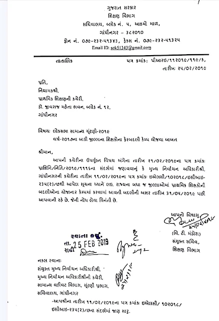 Prathmik shikshako ni jillafer badli camp babate gr Very imp date for jillfer camp 2019